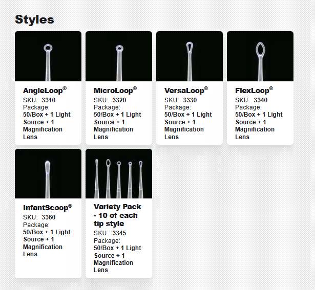 Designed with a specialized handle for a secure grip, ClearLook Lighted Ear Curettes provide an unobstructed view of the ear canal. ClearLook is available in five tip styles: FlexLoop®, VersaLoop®, AngleLoop®, MicroLoop® and InfantScoop® for diverse cerumen conditions.
