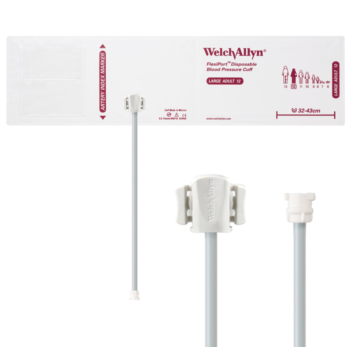 Welch Allyn FlexiPort Blood Pressure Cuff; Size-12 Large Adult, Soft Disposable, 1-Tube, Female Locking (#5082-182) Connector; Qty. 20
