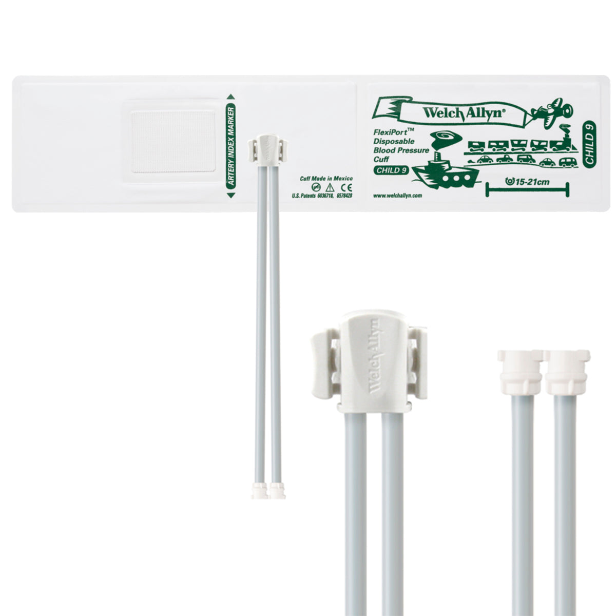 Welch Allyn FlexiPort Blood Pressure Cuff; Size-09 Child, Soft Disposable, 2-Tubes, Female Locking (#5082-182) Conn ectors; Qty. 20