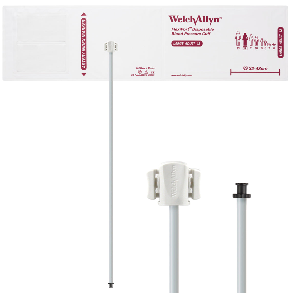 Welch Allyn FlexiPort Blood Pressure Cuff; Size-12 Large Adult, Soft Disposable, 1-Tube, Tri-Purpose (#5082-168) Connector; Qty. 20