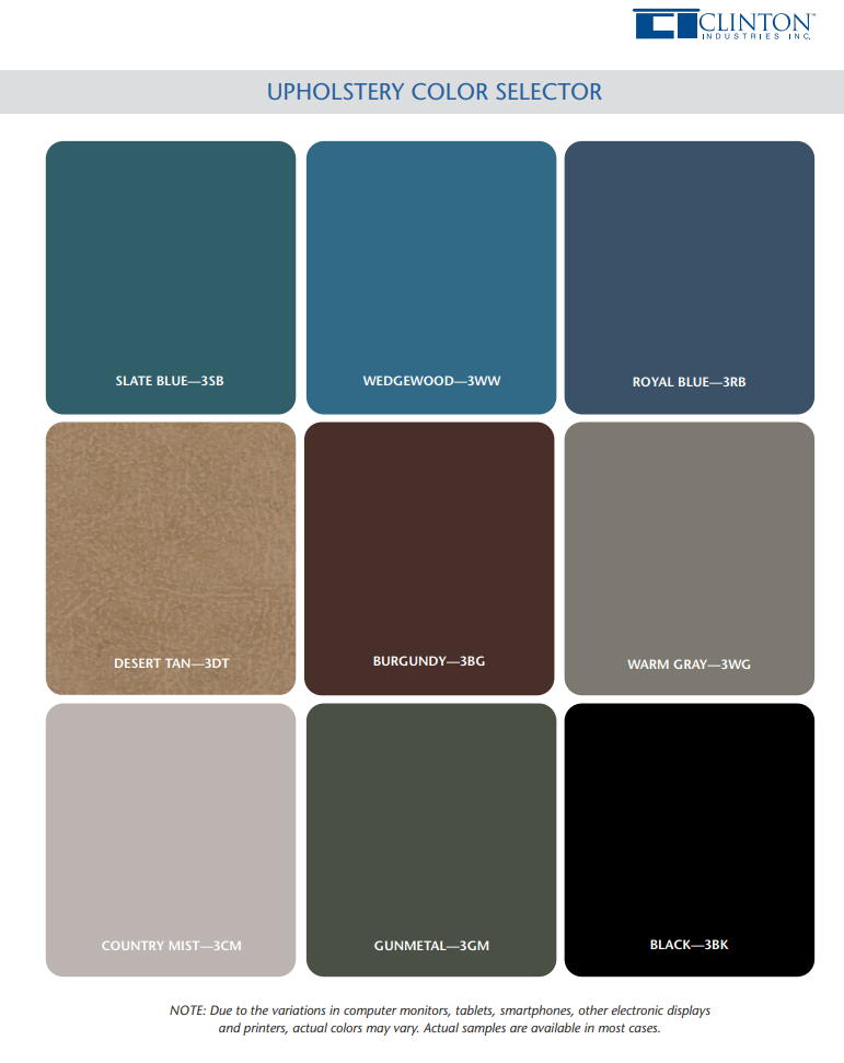 • Easy-clean, durable vinyl in a selection of colors