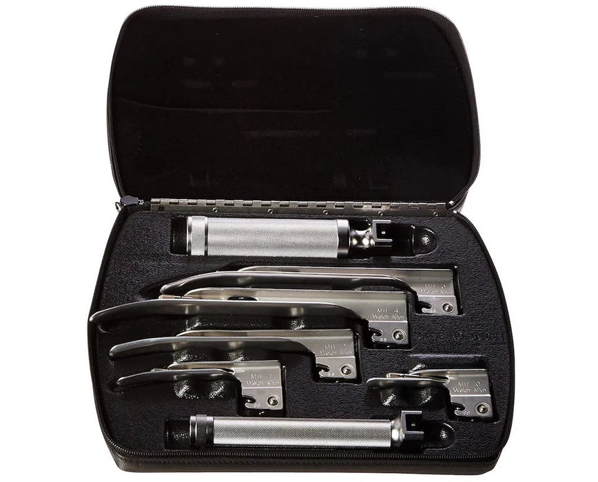 Miller standard set includes blade sizes #1, 2, 3 and 4, #60300 C cell battery handle,#60400 AA cell battery handle and case #05681