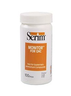 Serim’s QAC test strips were specifically developed for the food industry and measure concentrations of Quaternary Ammonium Compound (QAC) used to sanitize food processing and serving equipment as well as facilities. Recommended QAC concentrations vary depending upon the type of equipment and federal or state regulations. Properly using, testing and verifying sanitizing solutions is an important element of all successful sanitation programs.