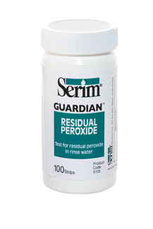 Serim® GUARDIAN™ RESIDUAL PEROXIDE Test Strips provide a rapid and convenient means for measuring the concentration of peroxide remaining in dialysate lines and dialyzers after disinfection with peracetic acid/peroxide-based disinfectants (such as Renalin®, Actril®, Minncare®, Puristeril®340, Peracidin®, PerAldecide™ and Micro-X®).